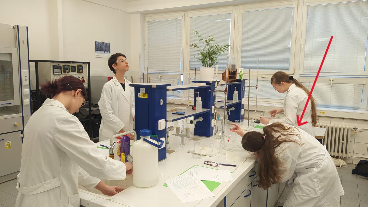 Eliška prokázala nadprůměrné teoretické znalosti o kyselinách, zásadách, pH, složení roztoků, volumetrii a také prakticky provedla alkalimetrickou titraci vzorku kyseliny. Celá laboratorní operace vyžaduje čistotu, preciznost práce a také celou řadu chemických výpočtů.