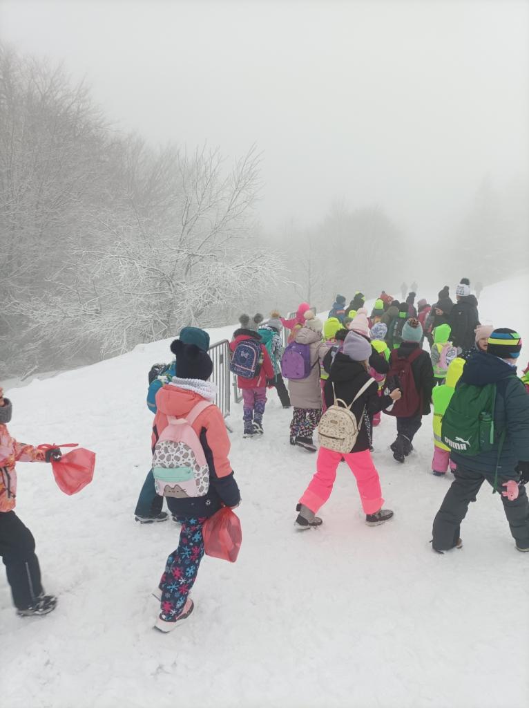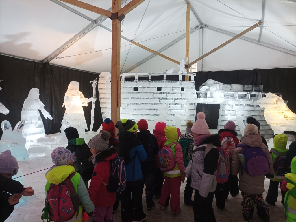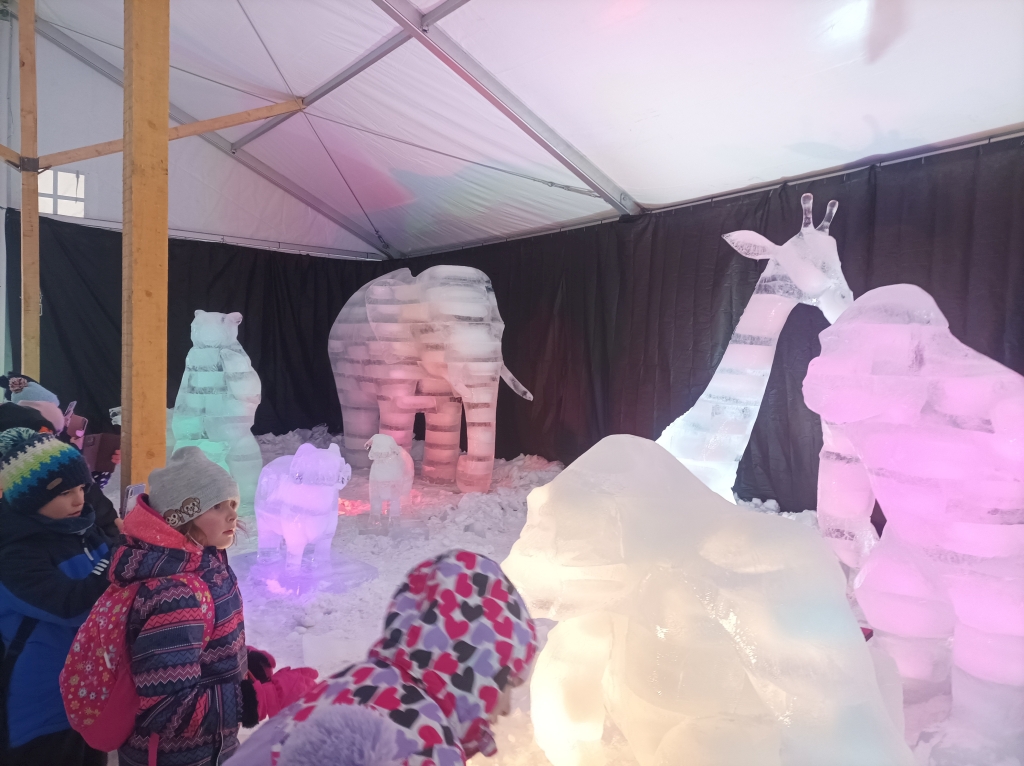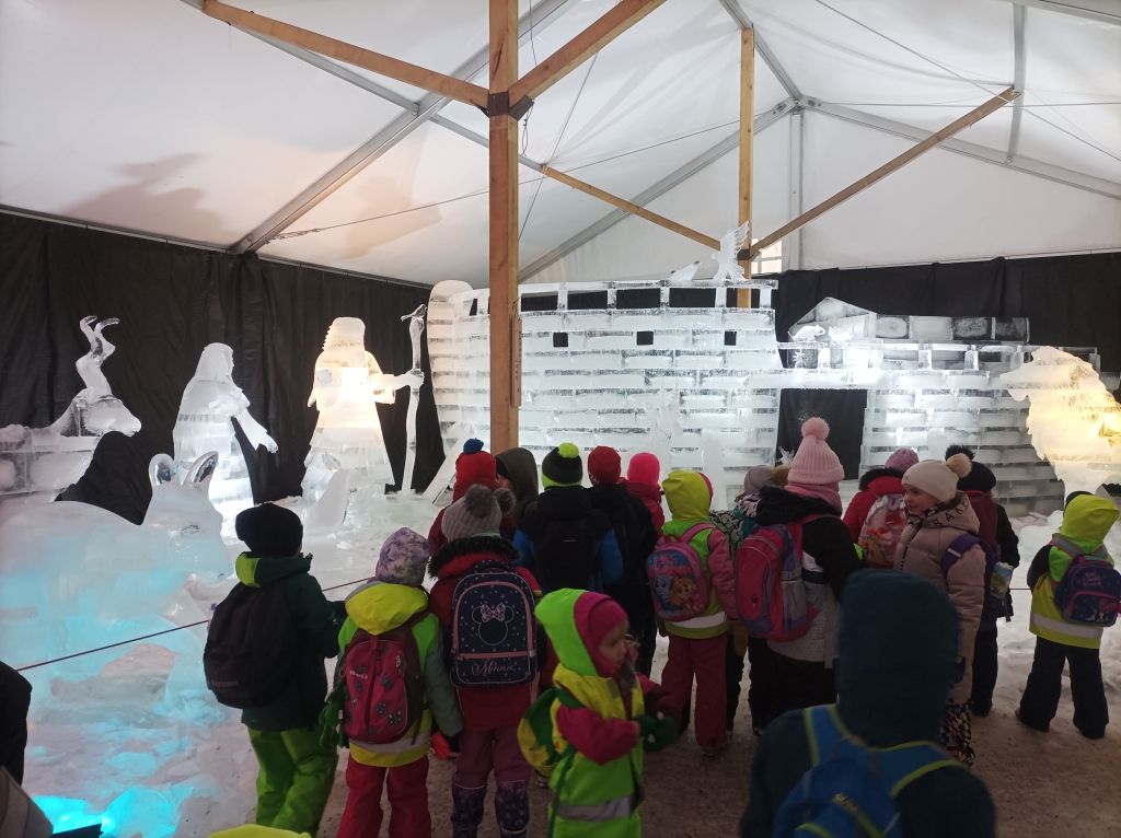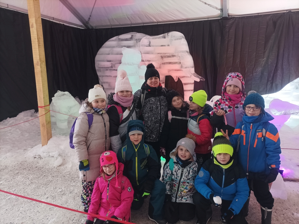 Po rozdání vysvědčení se hned druhý den vydali žáci 2. B a 3. C spolu s kamarády z MŠ Kostka  na Pustevny, kde měli naplánovanou prohlídku ledových soch na téma „Noemova archa“. Hned od rána nás strašil déšť, ale my jsme se nenechali odradit a na Pustevny se vydali. Pršelo celou cestu a my se začínali pomalu, ale jistě s výletem loučit. Najednou v půlce kopce se déšť změnil ve sníh a všude okolo bylo krásně bílo. Radost v autobuse nebrala konce. Na Pustevnách to krásně křupalo pod nohama, stromy byly obalené sněhem jako od Mrazíka a mlha by se dala krájet. Prostě pravá valašská zima, jakou jsme už dlouho nezažili. Sochy byly nádherné a ze všech koutů se ozývaly radostné výkřiky. Prohlídku jsme zakončili nakupováním, které na výletě nesmí chybět, a ošlehaní větrem jsme se vrátili zpět na Vsetín. Kdo letos ledové sochy nestihl, ať si je příští rok určitě nenechá ujít, stojí to za to.