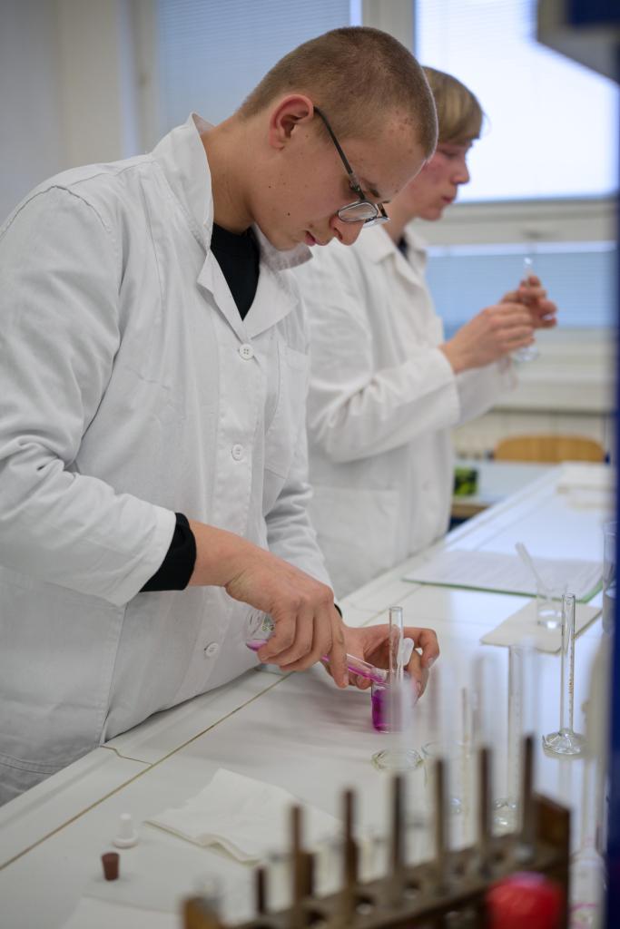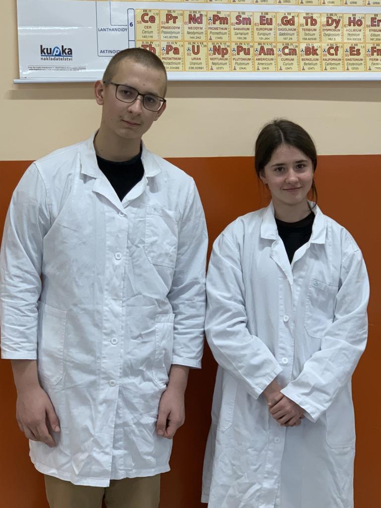 Naši žáci – Ondřej Vařák (9.B), Alžběta Chrástecká (9.C) prokázali nadprůměrné nejen teoretické znalosti z obecné a anorganické chemie, ale také prakticky provedli kolorimetrii. Celá laboratorní práce vyžaduje velkou preciznost.