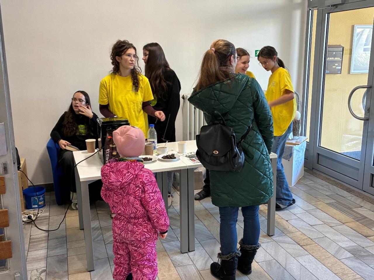 Netradiční termín pro „Den otevřených dveří“, ale tradiční přivítání návštěvníků ve vestibulu školy s naší FT skupinou, FT kávou, FT čajem a FT čokoládou.