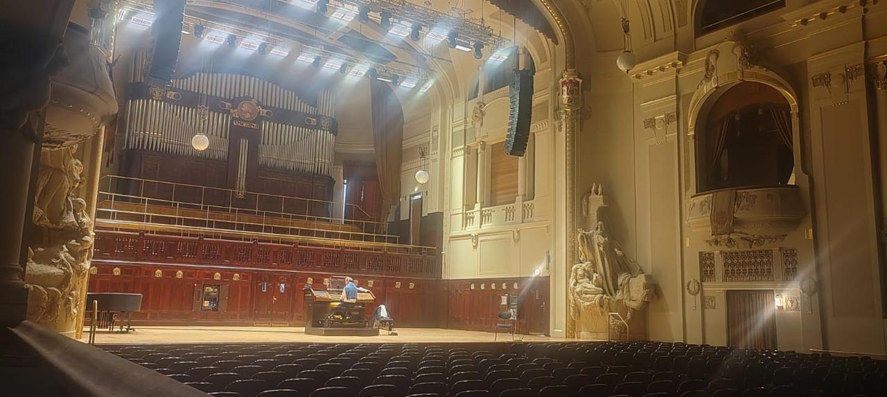 Podařilo se nám nahlédnout i do Smetanovy síně, kde právě probíhala zkouška varhanní hudby.
