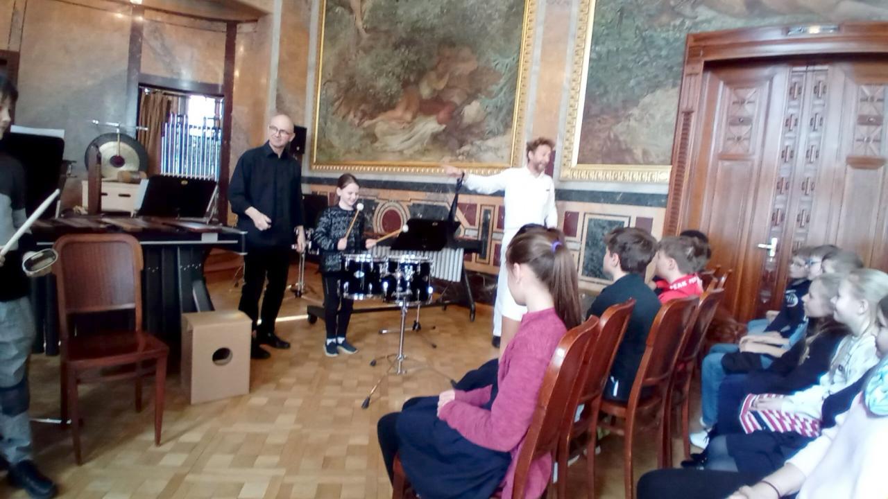 27. 3. konečně nastal den, na který jsme se v 5.A velmi těšili. Navštívili jsme hudební workshop Pražského symfonického orchestru jako naši odměnu v soutěži nakladatelství učebnic Fraus Klett.