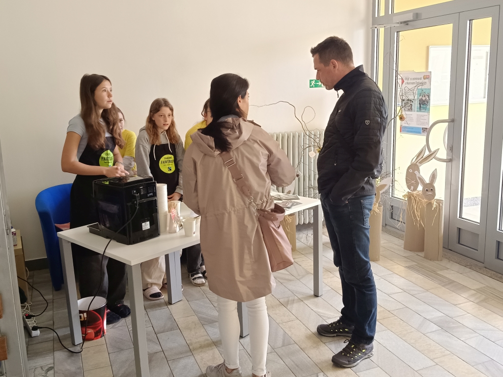 V úterý 16.04.2024 proběhly na naší škole společné třídní schůzky. Pro rodiče jsme si opět hned při vchodu připravili občerstvení v podobě fairtradové kávy, čaje a na ochutnávku jsme připravili různé druhy čokolády. Vůně čerstvé kávy se vinula celou budovou.